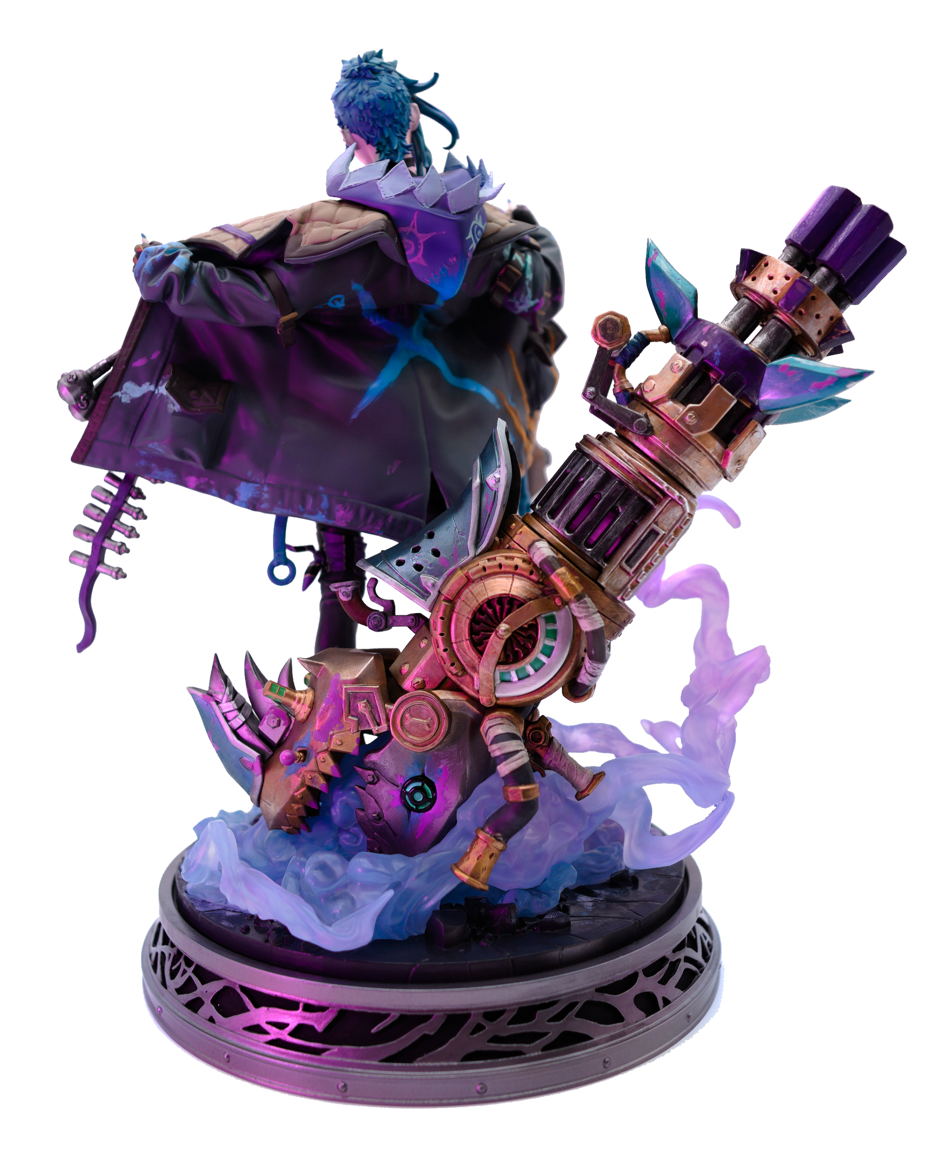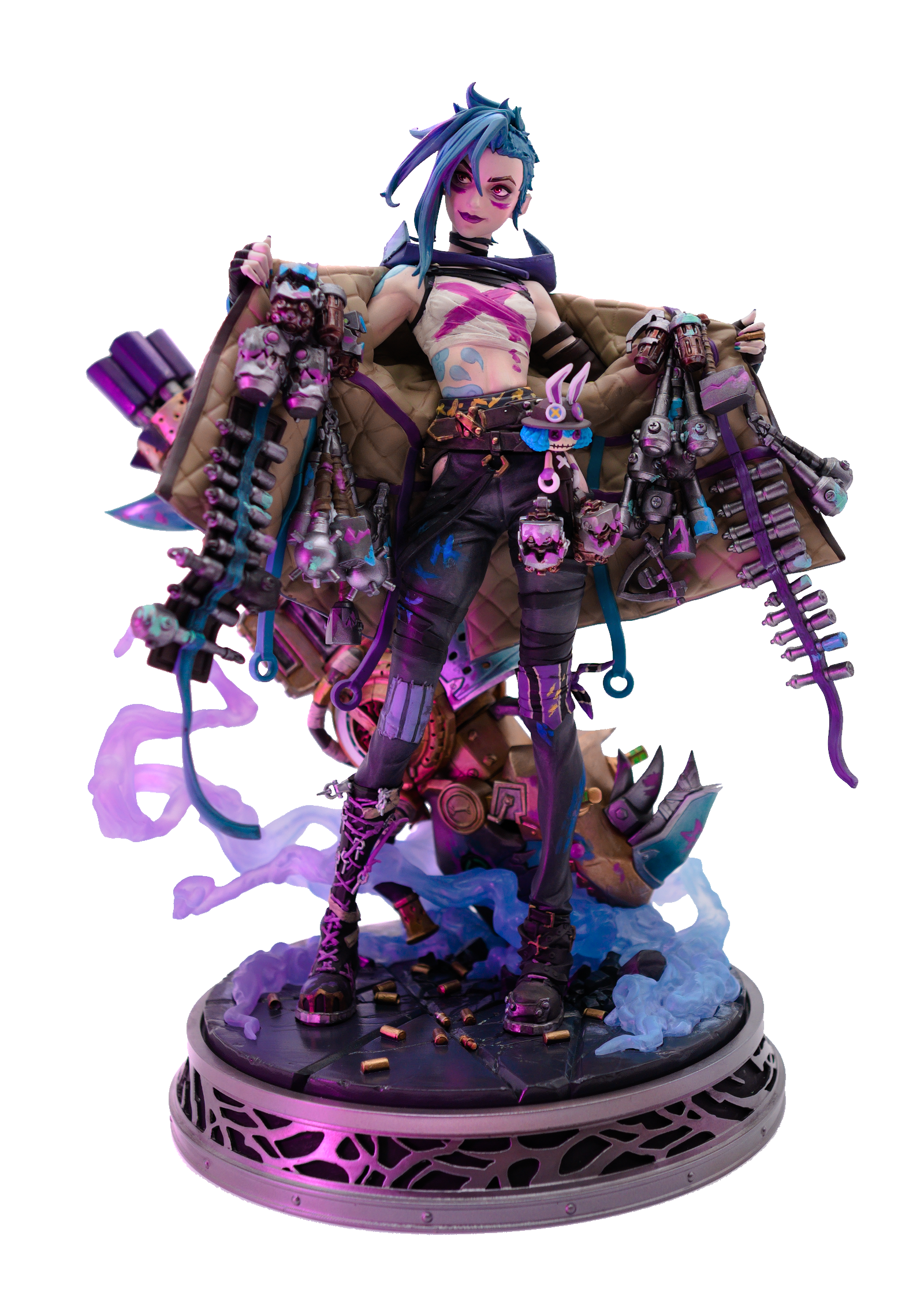 煙を上げるライノガン ロケットランチャーの前に立ち、スティルウォーターの武器庫よりも多くの武器と騒乱の道具を身にまとったこのジンクスのスタチューは、「混沌の使者」という言葉に新たな意味をもたらします。